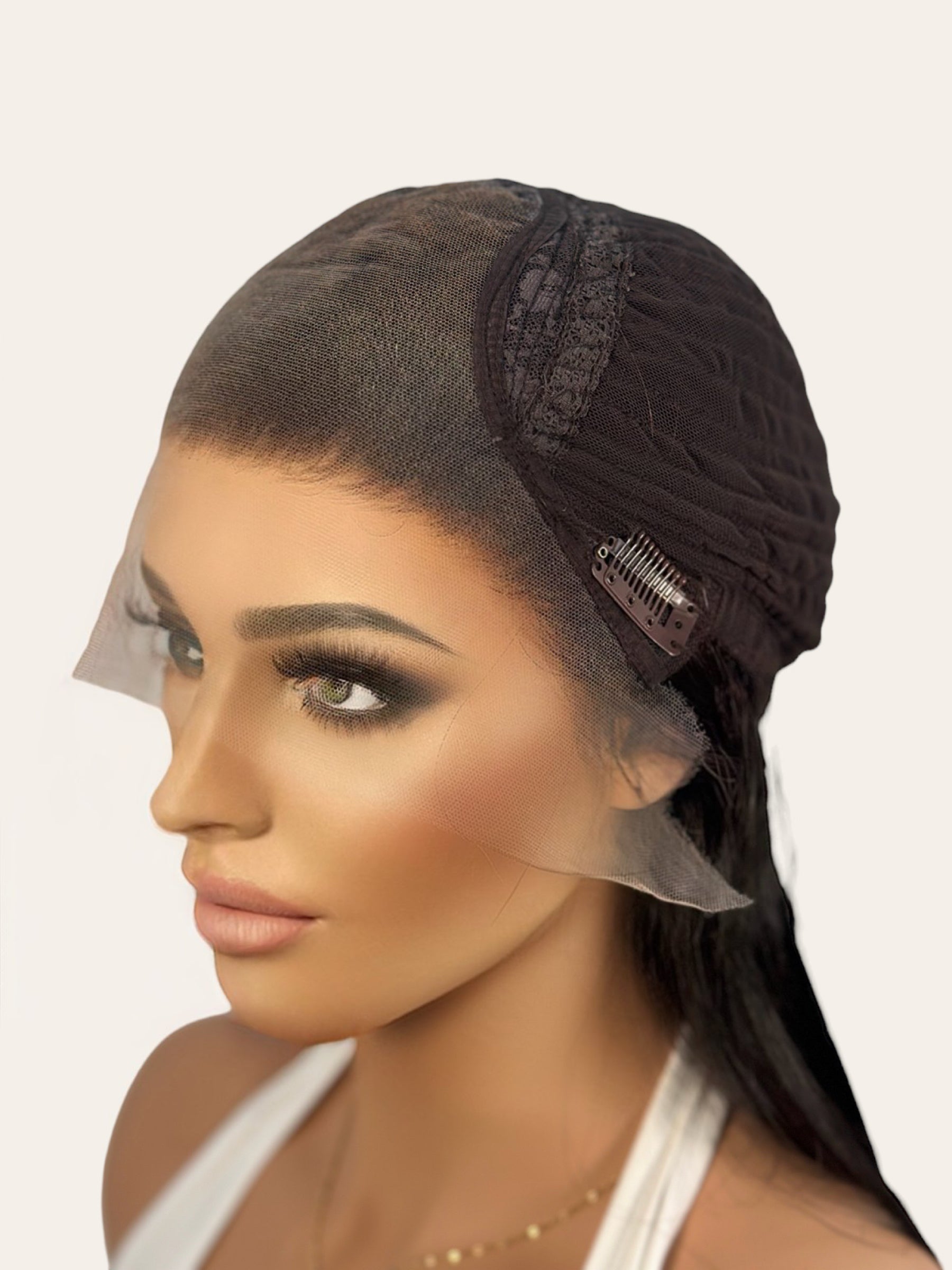 I often refer to this extra lace as your “NWT” or “Price tag” to symbolize that the hair piece is new and not worn. After receiving your new hairpiece, this extra lace is removed before wearing by using SHARP scissors to cut about 1/8 inch away from the hairline. You can also use pinking shears, which creates a jagged line, so the eye is not drawn to the lace. Tips for cutting the lace can be found on our social media pages.