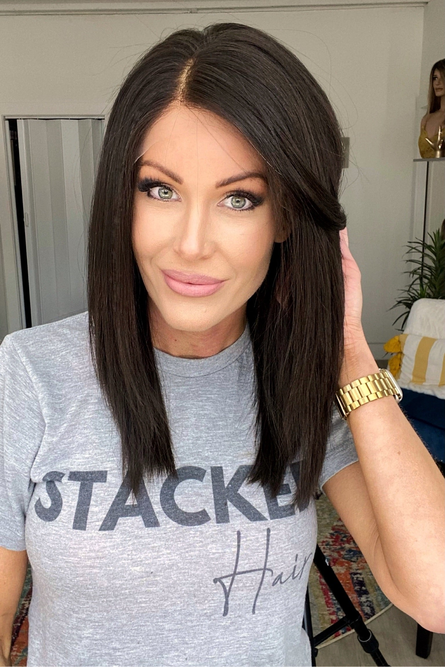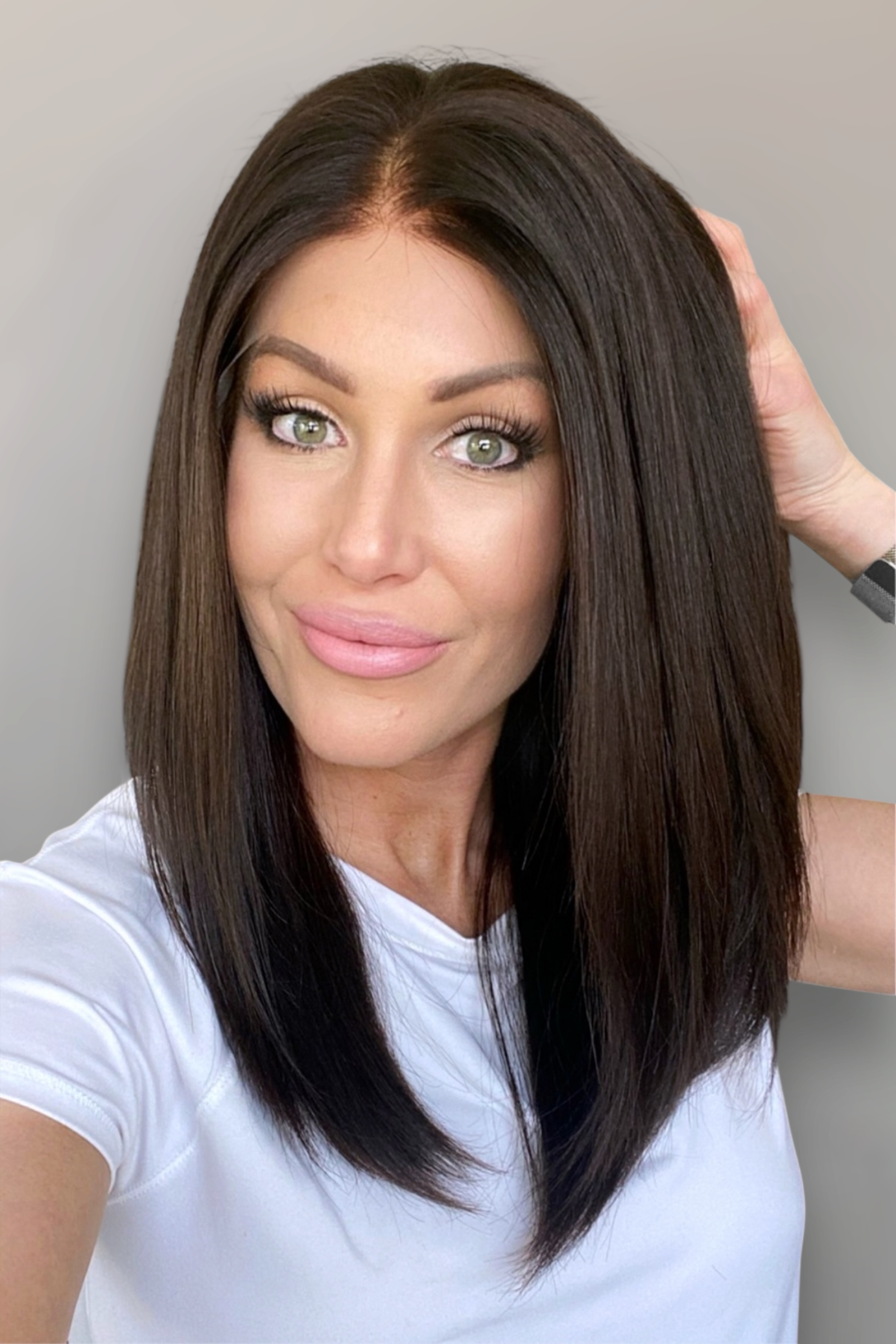 A wig is full coverage and will cover your entire head. A topper is partial coverage and is typically worn utilizing your biological hair at the nape and hairline. Think of a topper like a men’s “toupee” (but more fabulous, of course!) Toppers should be about the same or similar color as your bio hair since it’s only partial coverage, and should be about the same length or just a few inches longer. A wig can be any color or length since it’s full coverage, and doesn’t need to blend with your bio hair.