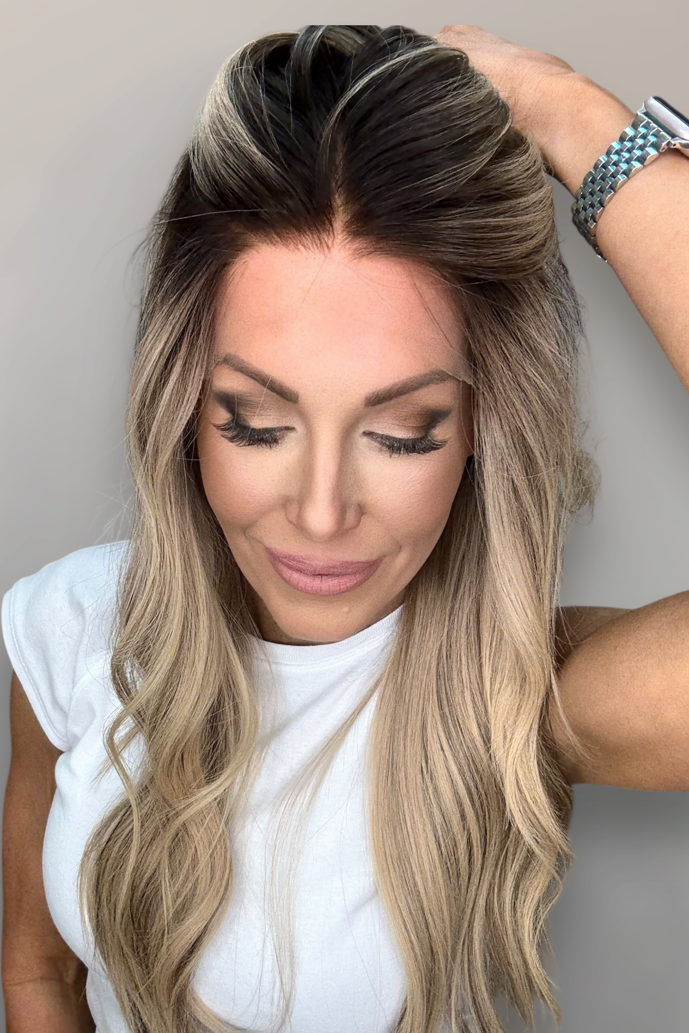 A wig is full coverage and will cover your entire head. A topper is partial coverage and is typically worn utilizing your biological hair at the nape and hairline. Think of a topper like a men’s “toupee” (but more fabulous, of course!) Toppers should be about the same or similar color as your bio hair since it’s only partial coverage, and should be about the same length or just a few inches longer. A wig can be any color or length since it’s full coverage, and doesn’t need to blend with your bio hair.