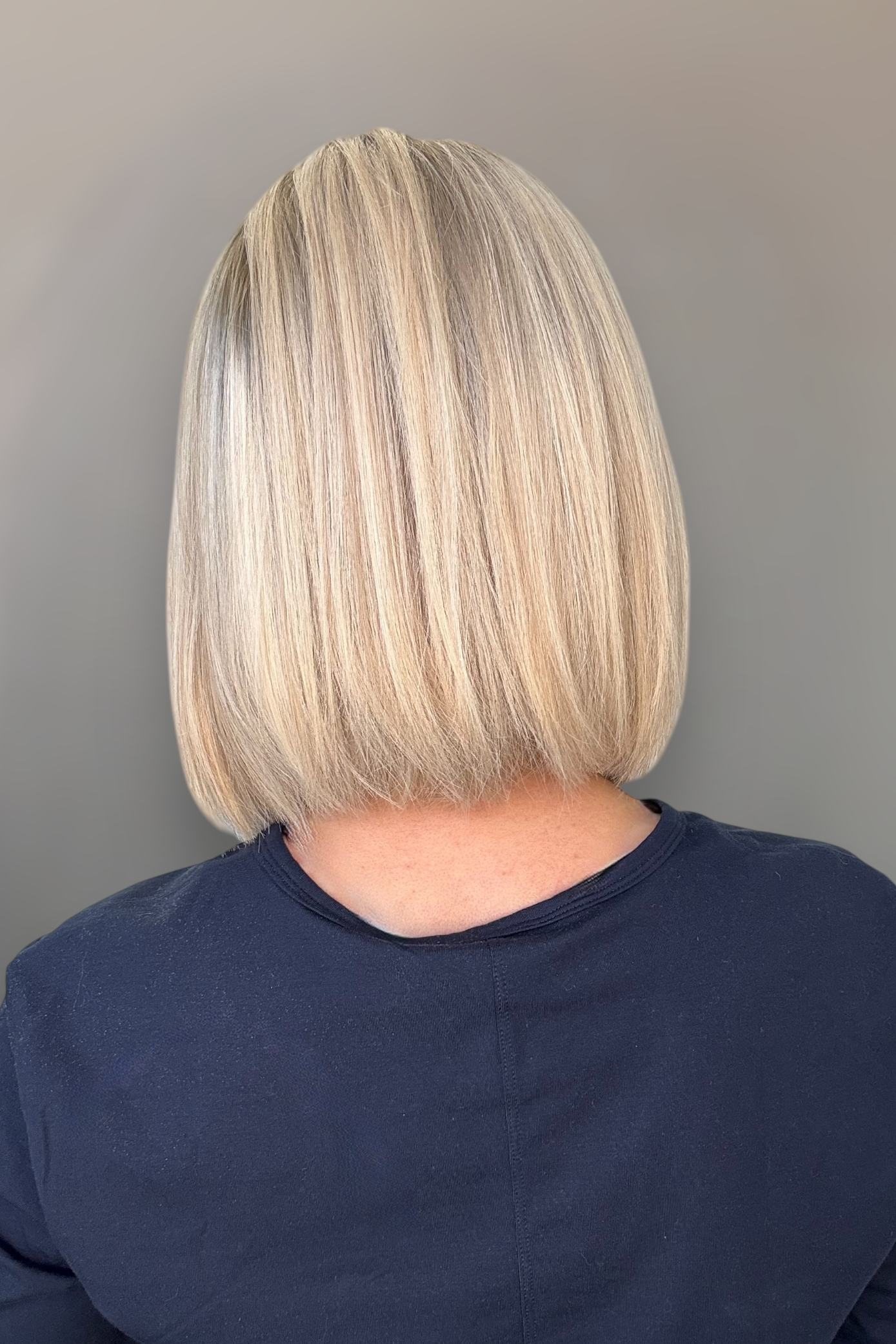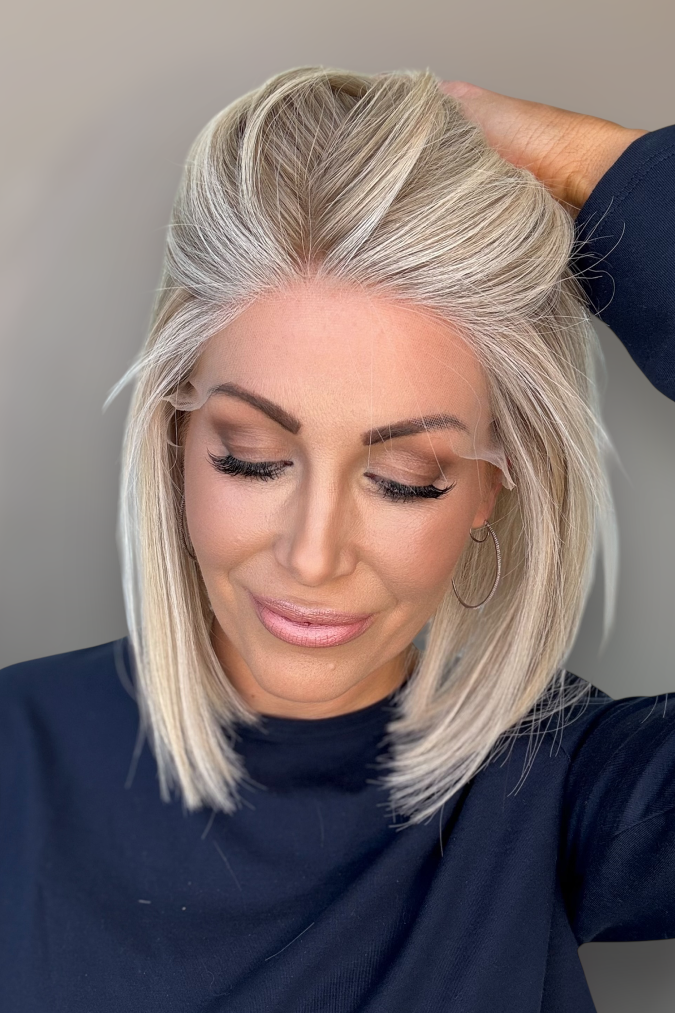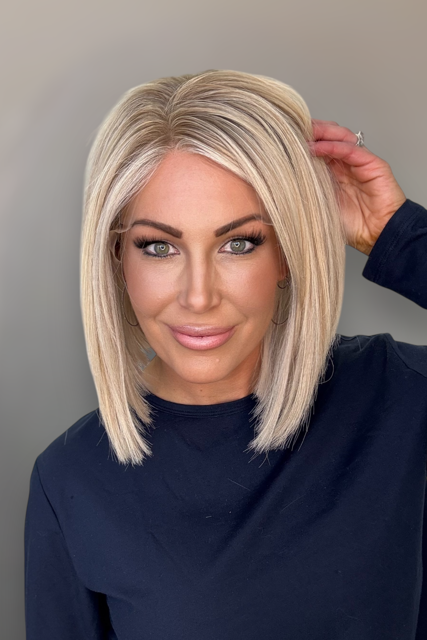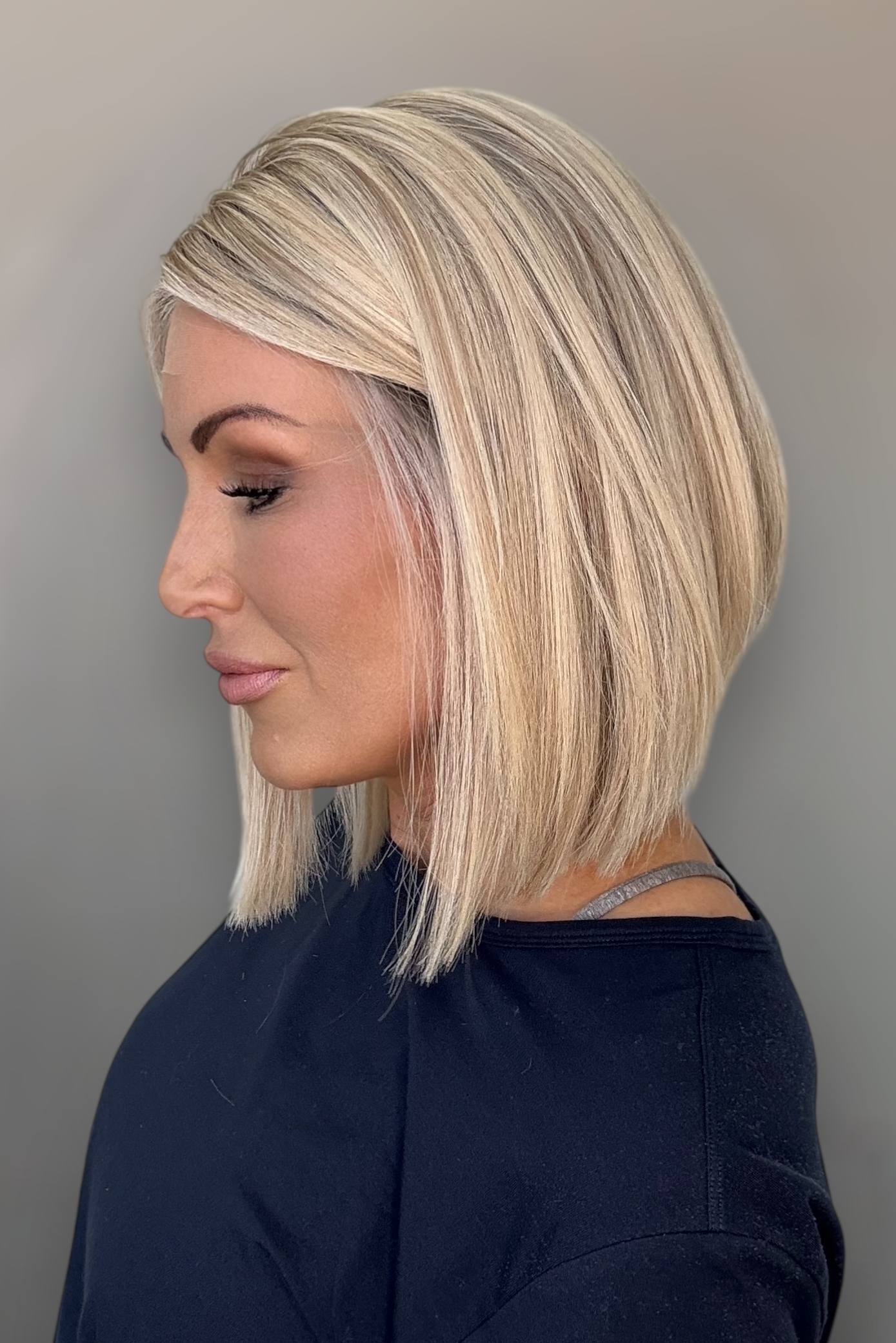 A wig is full coverage and will cover your entire head. A topper is partial coverage and is typically worn utilizing your biological hair at the nape and hairline. Think of a topper like a men’s “toupee” (but more fabulous, of course!) Toppers should be about the same or similar color as your bio hair since it’s only partial coverage, and should be about the same length or just a few inches longer. A wig can be any color or length since it’s full coverage, and doesn’t need to blend with your bio hair.
